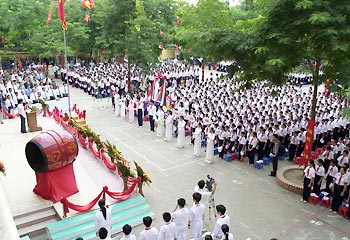 Cùng ngày, Phó Chủ tịch Quốc hội Uông Chu Lưu đã đánh trống khai giảng năm học 2011-2012 tại trường THPT chuyên Lam Sơn (Thanh Hóa).